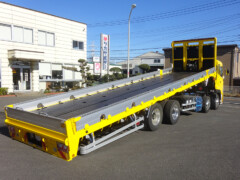 スイングボデーPlusとは、これまでのスイングボデーにテールオートを融合させた新しい重機運搬車と成りました。これにより積載物によって二通りの使い分けができ、安全で効率の良い車輌となりました。